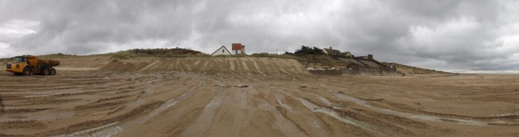 – de 2023-2025, le trait de côte a progressé sur un linéaire d’environ 150 mètres immédiatement au sud de la cale, bénéficiant de la présence des fascines mises en place.