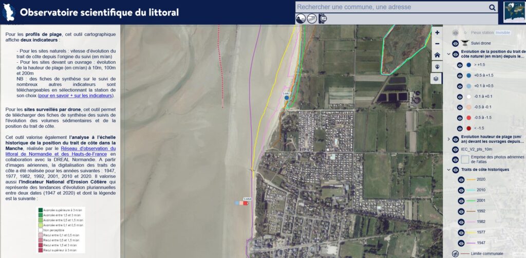 Elle permet de suivre l’évolution de la plage située devant la digue des Garennes, un ouvrage qui se présente sous la forme d’une protection en enrochement du pied de cordon dunaire.