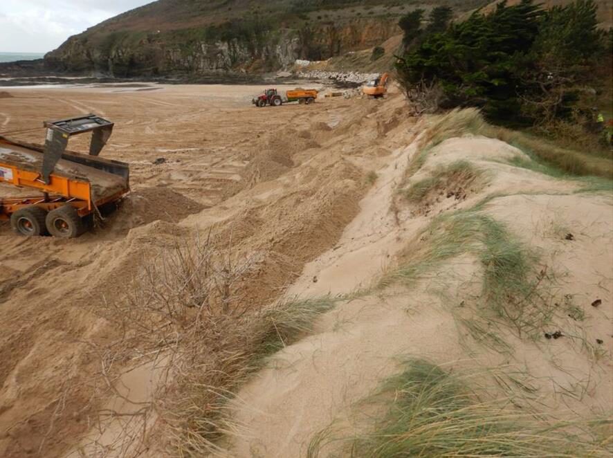 – des actions de lutte active « souple » : deux rechargements de pied de dune ont été réalisés en 2019 (3500 m3) et 2020 (2000 m3).