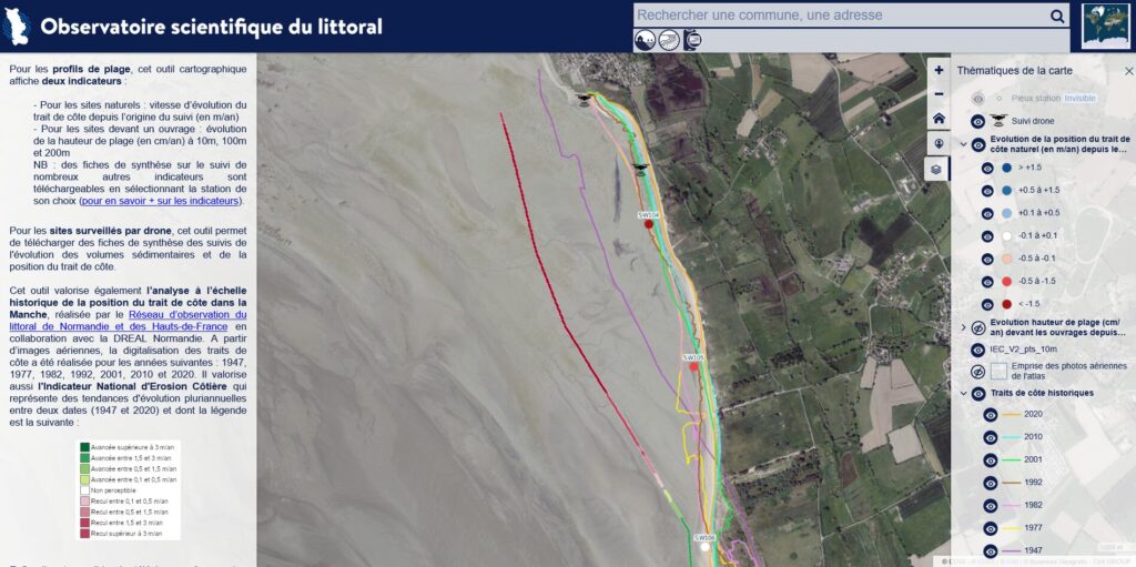 Les fiches de synthèse des suivis drone par le Département et la DDTM sont téléchargeables sur l’application dédiée aux résultats de l’observatoire scientifique du littoral.