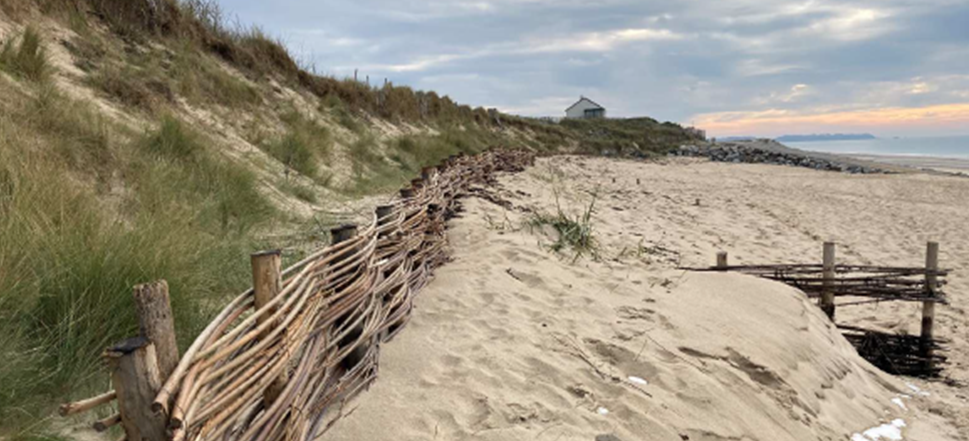 – en novembre 2022, la mise en place d’un 2ème rideau de fascines entre le pied de la dune et le 1er rideau de fascines mis en place en 2020