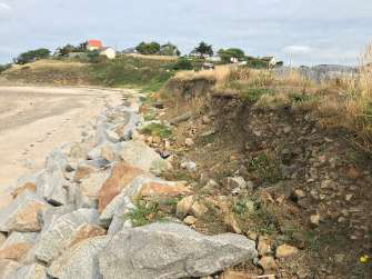 – au nord de l’enrochement du lieu-dit Beausoleil, une encoche d’érosion avec un recul du trait de côte estimé entre 15 et 25 m. Depuis 2010, cette encoche n’a pas progressé avec une stabilisation du trait de côte.