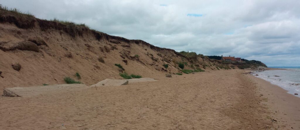 Le littoral de la zone est naturel, à l’exception de l’apparition ponctuelle selon les conditions d’ensablement, de vestiges du mur antichar en pied de dunes, au nord du musée.